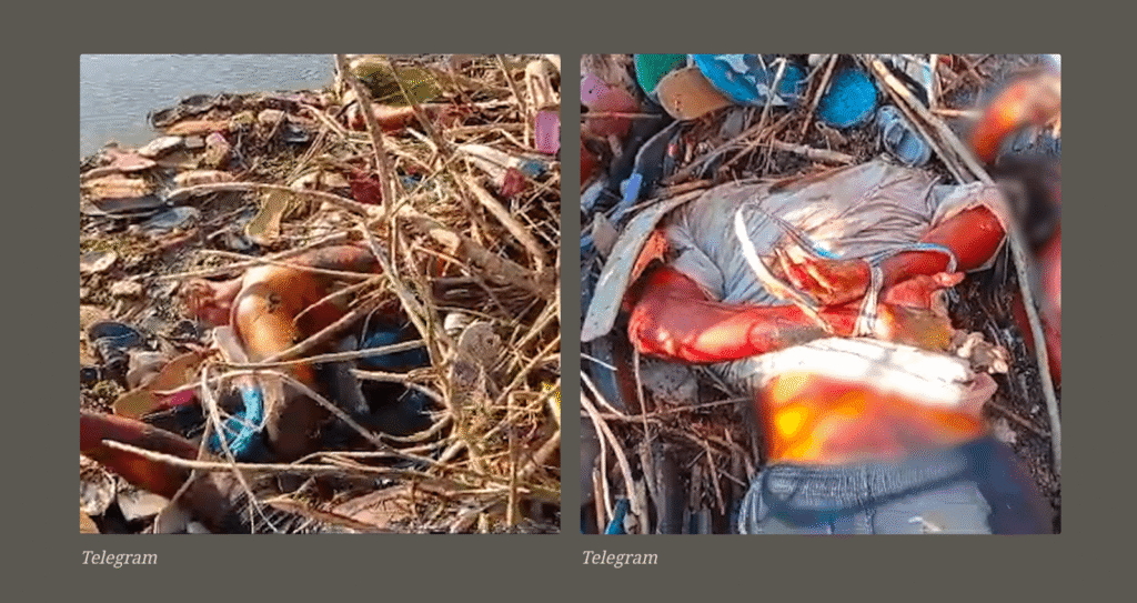 In parallel, the timing of the footage was analyzed by examining water levels in the canal and the visible stages of decomposition of the bodies, and then correlating these observations with the entry of the Sudanese Armed Forces and allied units into Wad Madani on January 12, 2025.