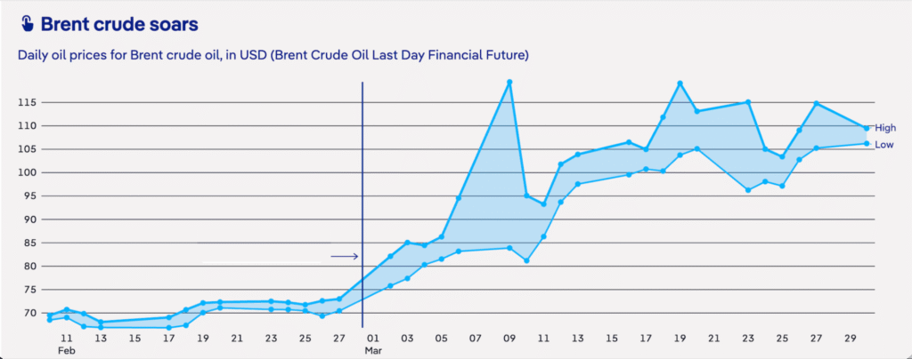 Oil and gas prices have risen sharply due to Iranian behavior in maritime corridors, particularly in the Gulf and the Strait of Hormuz. Estimates suggest that the price of a barrel of oil could reach $100 (€86) or more if maritime navigation through the Strait of Hormuz continues to face heightened risks.